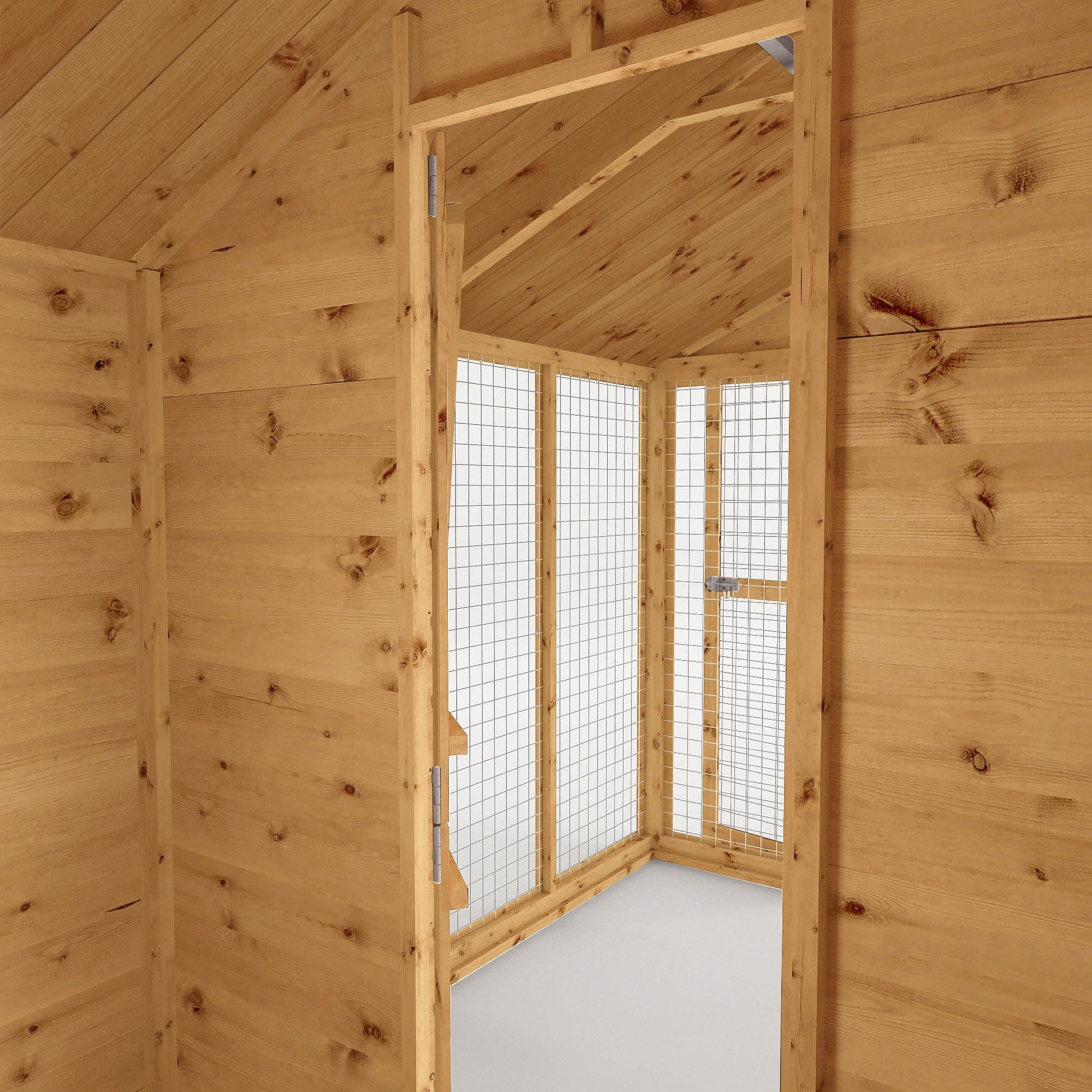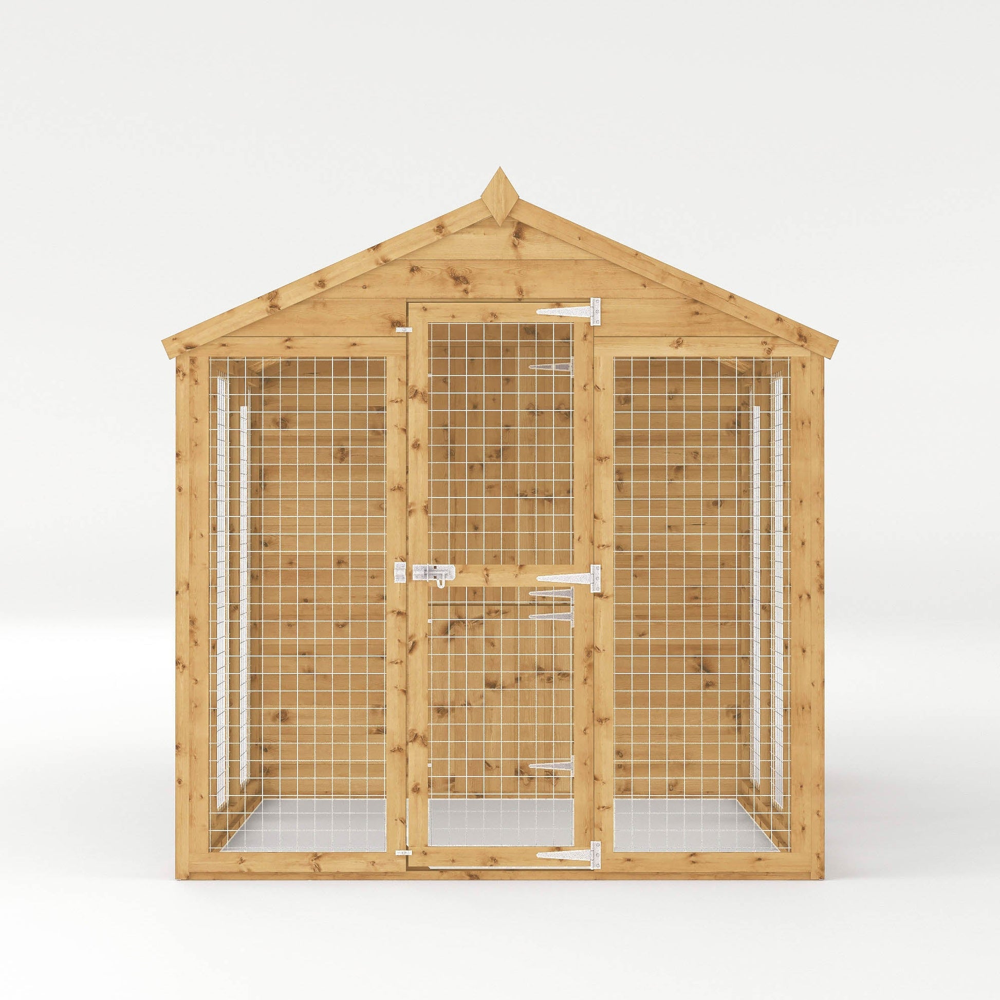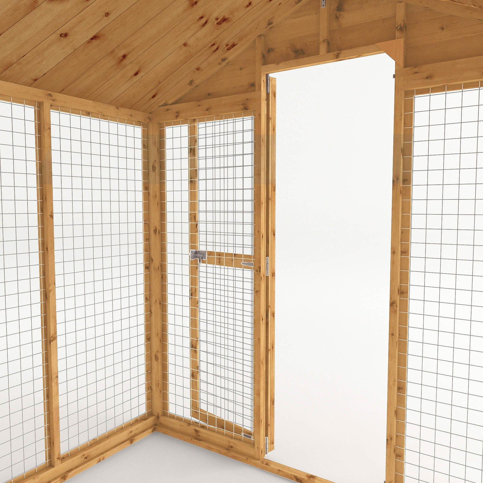 Constructed with sturdy 12mm interlocking Shiplap tongue and groove boards, this dog kennel & run boasts a durable structure that will provide reliable use for years to come. The smooth and strong interlocking boards used for the floor ensure a premium, high-grade finish. The entire building is covered by a solid sheet board roof and topped with high-quality mineral felt for long-lasting weatherproof protection. To ensure maximum security, the mesh access door is equipped with a high-quality padbolt and turn buttons.