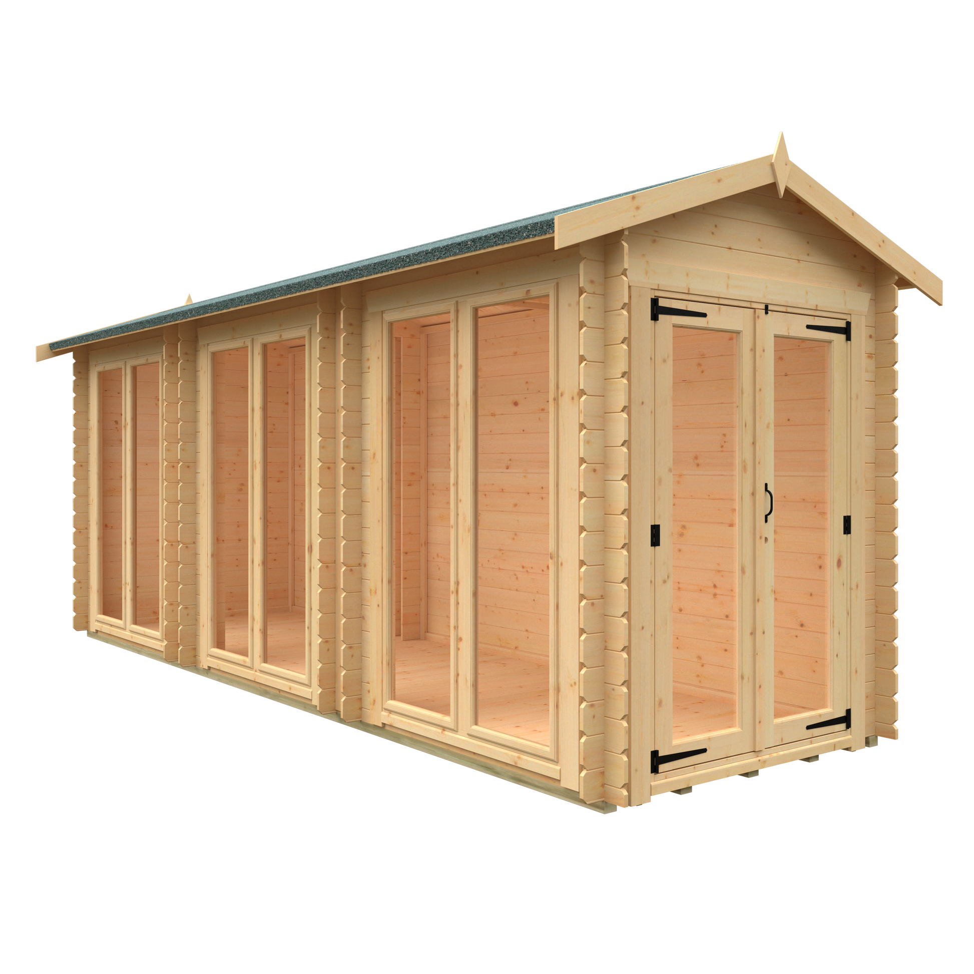 | 3500 | 1750 | 3310x1560 | 3272x1522 | 2317 | 2030 | 2200 | 1975 | 3500x1750 | 3500x1975 | 4 | 378 | 19mm | 28mm x 44mm | Tongue & Groove Board | 12mm | Yes | 12mm | Full Glazed Full Pane Double Doors | 1200mm x 1790mm | Full Pane Full Length Portrait Windows Fixed | 510mm x 1670mm | 4mm | Toughened Glass | Grey Mineral Felt | Untreated | Lock and Key, with Pull Handle and Hinges |