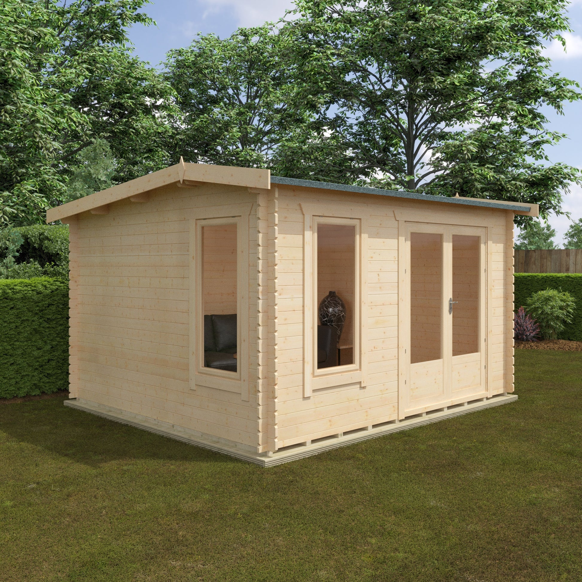 The Longleat, made as standard with Heavy Duty 28mm Tongue and Groove logs, is a Cabin built for every purpose. It can be enjoyed by kids and adults alike and makes a perfect addition to your home and garden. The full length glazed windows and doors (which include FREE toughened glazing) allow for the cabin to be fully lit up during those warm summer nights.