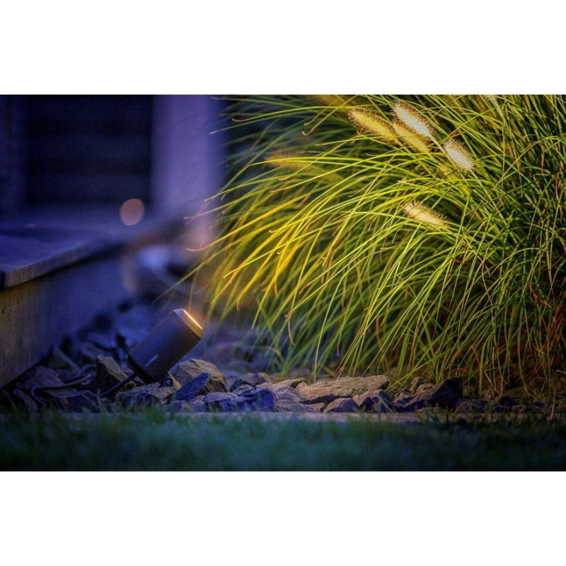 The versatile Castor 9 garden spotlight features a dimmable function for customizable brightness, making it perfect for all seasons. Utilizing a directional light beam, this spotlight is ideal for highlighting specific objects such as trees or shrubs. Crafted from aluminium with a matte anthracite powder coating, this spotlight has a standard light angle of 60 degrees and the option to create a 30 degree angle with the included reflector. With a power consumption of 9 W, it measures 9.5 cm high and 14 cm wide.