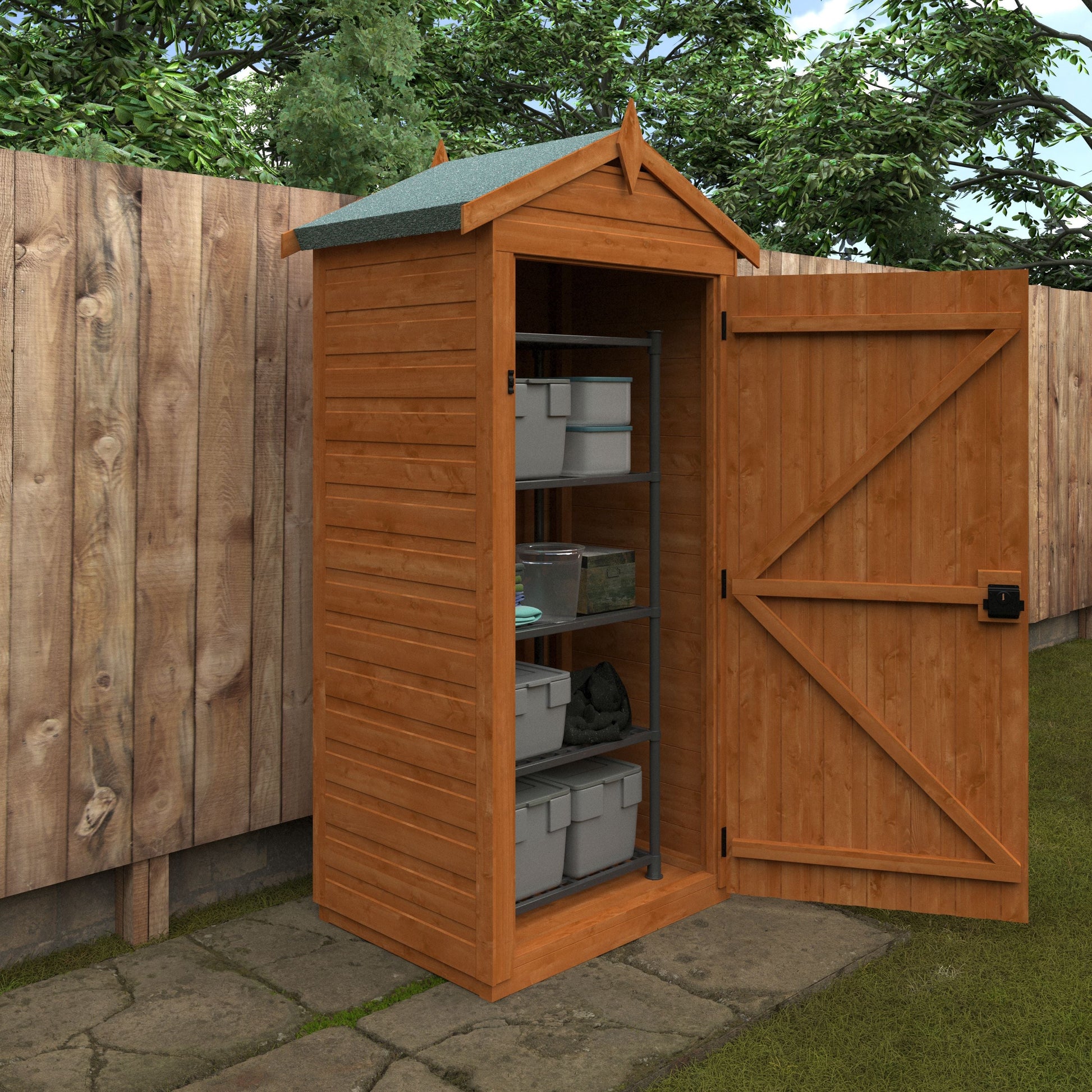 - Weather-Resistant Design: The grey mineral felt roof covering ensures your tools stay protected from the elements, while the burnt orange water-based dip treatment adds a touch of elegance.