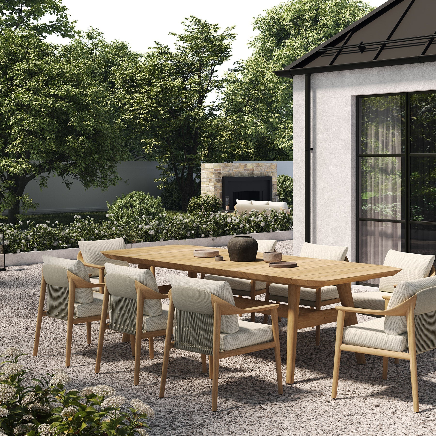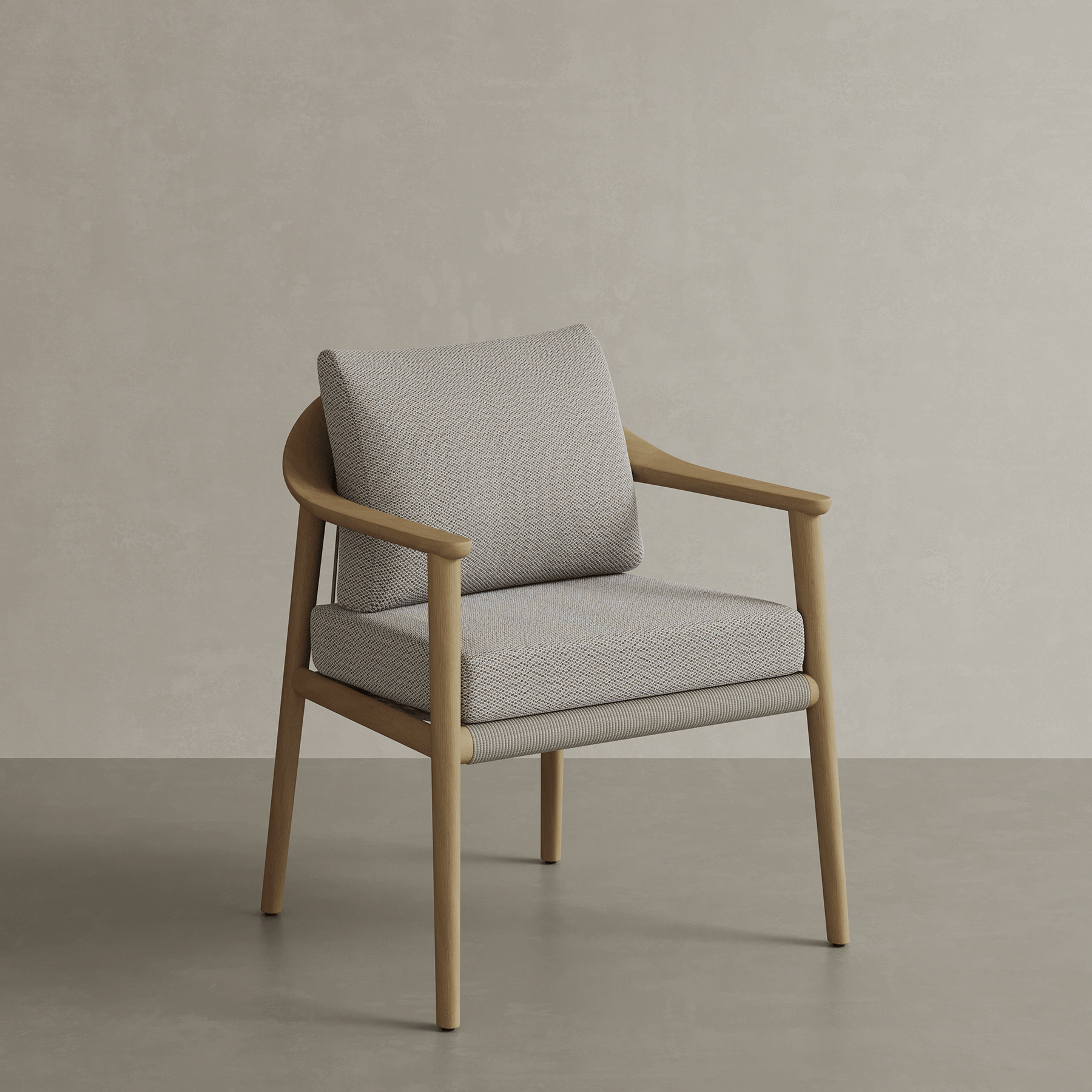 The N1 Dining Chair harmoniously combines traditional elegance with modern approach. Featuring a meticulously crafted teak frame complemented by intricately woven panels, this chair seamlessly blends different textures to create a appealing aesthetic. The handwoven design wraps around the chair back in perfect symmetry, adding both texture and transparency to its form.