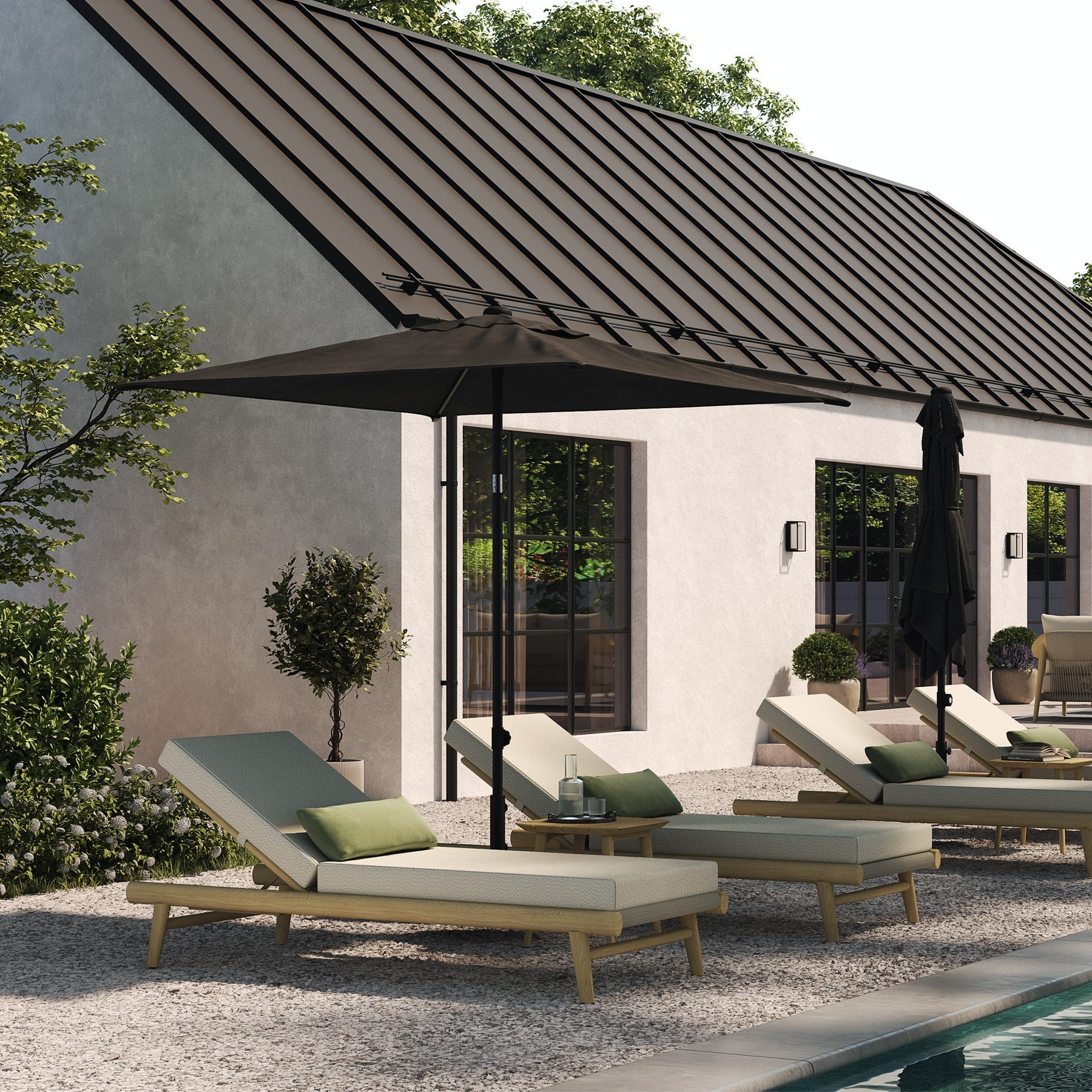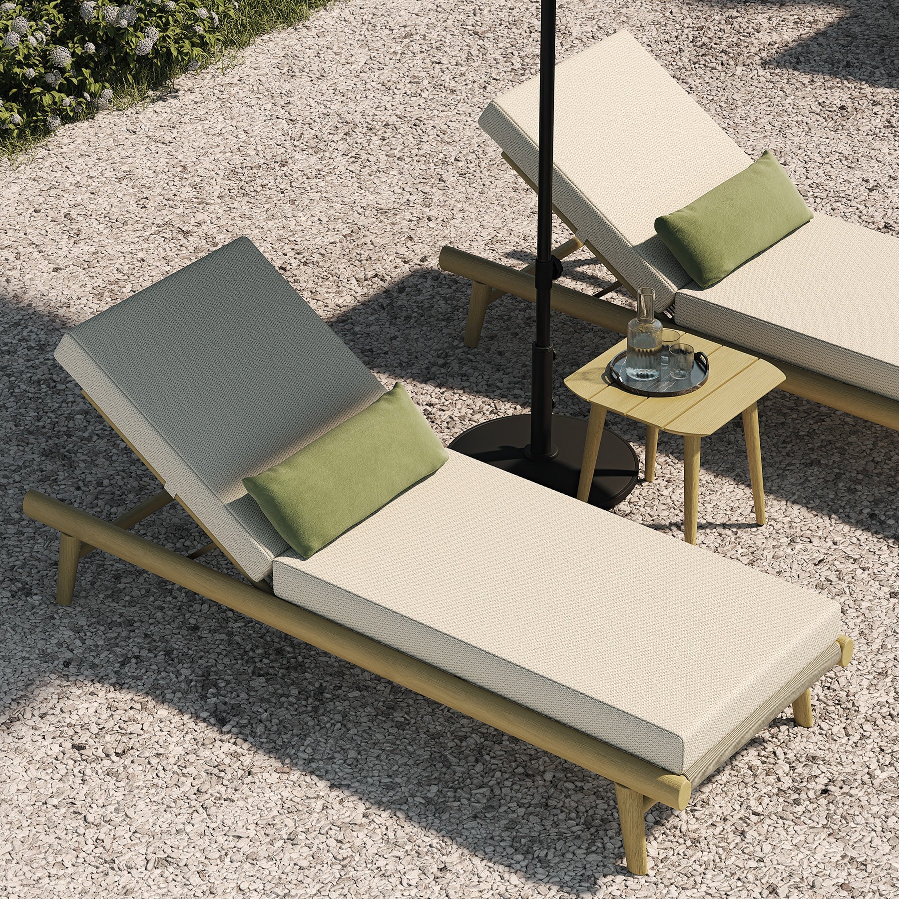 The lounger is adorned with a plush cushion in Oatmeal Textured Weave, echoing the soft tones of sandy shores and sun-bleached stones. The fabric, chosen for both its aesthetic and functional excellence, offers a serene complement to the sun lounger’s pale teak frame. The combination of the light teak and oatmeal fabric captures the essence of relaxed sophistication. This piece from the N1 Collection is more than a sun lounger; it is an invitation to embrace the leisurely pace of summer days, an essential escape within the sanctuary of luxurious outdoor living.