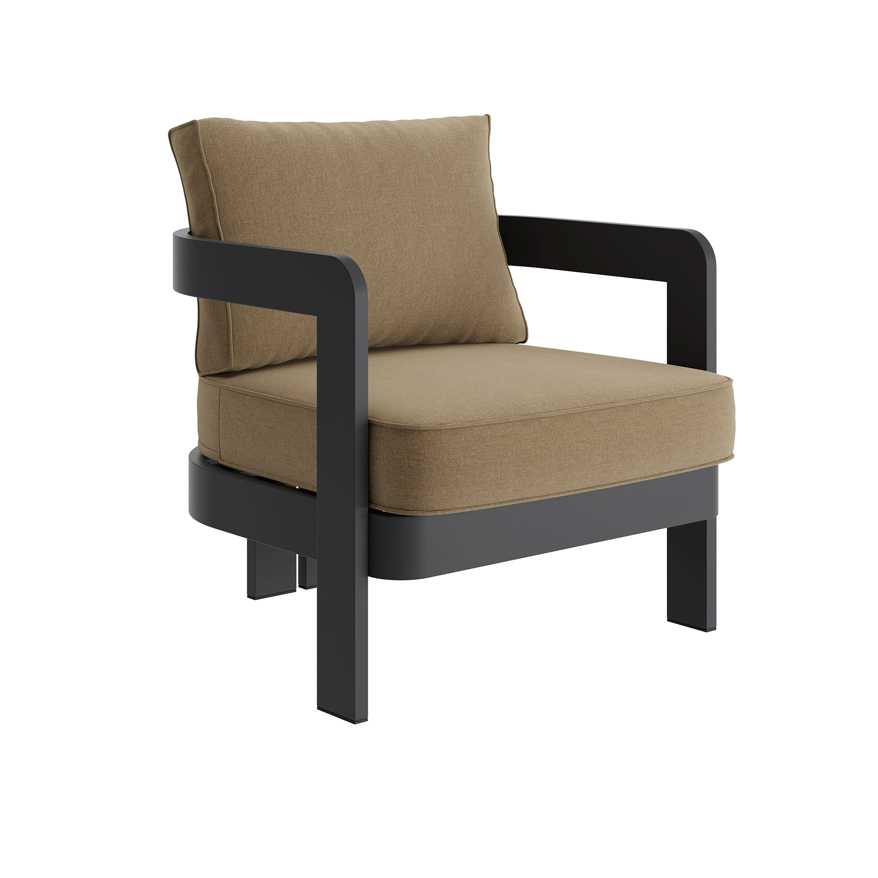The N3 collection pays homage to the modern concept of proportion and architectural intricacy. The N3 lounge chair is meticulously constructed from robust aluminium with a Kohl powder coated finish that is extremely durable in a multitude of weathers and scenarios. Its unique tripod shape, has a gracefully curved backrest, accompanied by two supporting front legs and and almost concealed rear leg with a subtle enchanting split plane detail visible from behind.