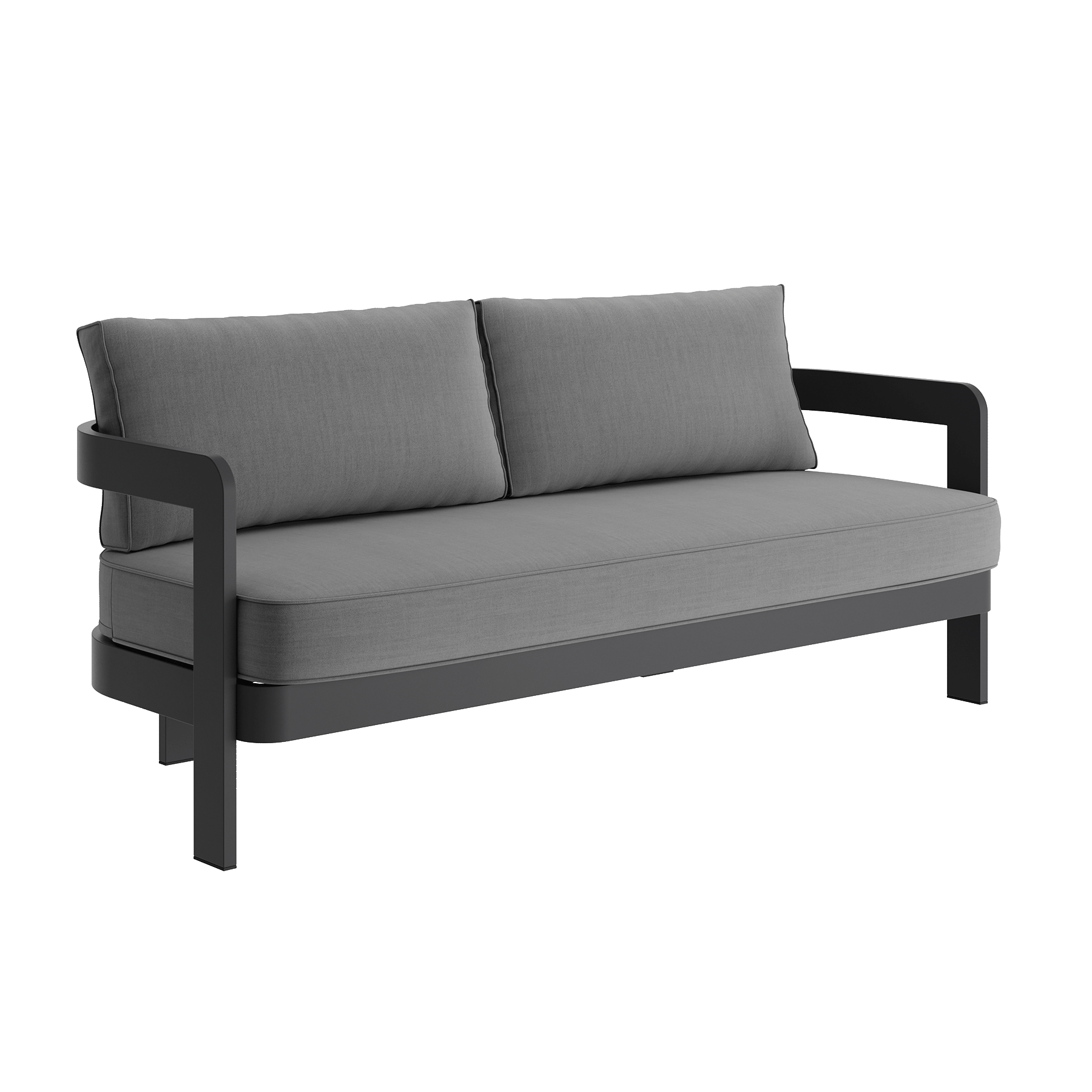 The N3 collection pays homage to the modern concept of proportion and architectural intricacy. The N3 Sofa is meticulously constructed from robust aluminium with a Kohl powder coated finish. Its clean lines are juxtaposed with its gracefully curved backrest, accompanied by two supporting side legs and and two subtle legs at the rear.