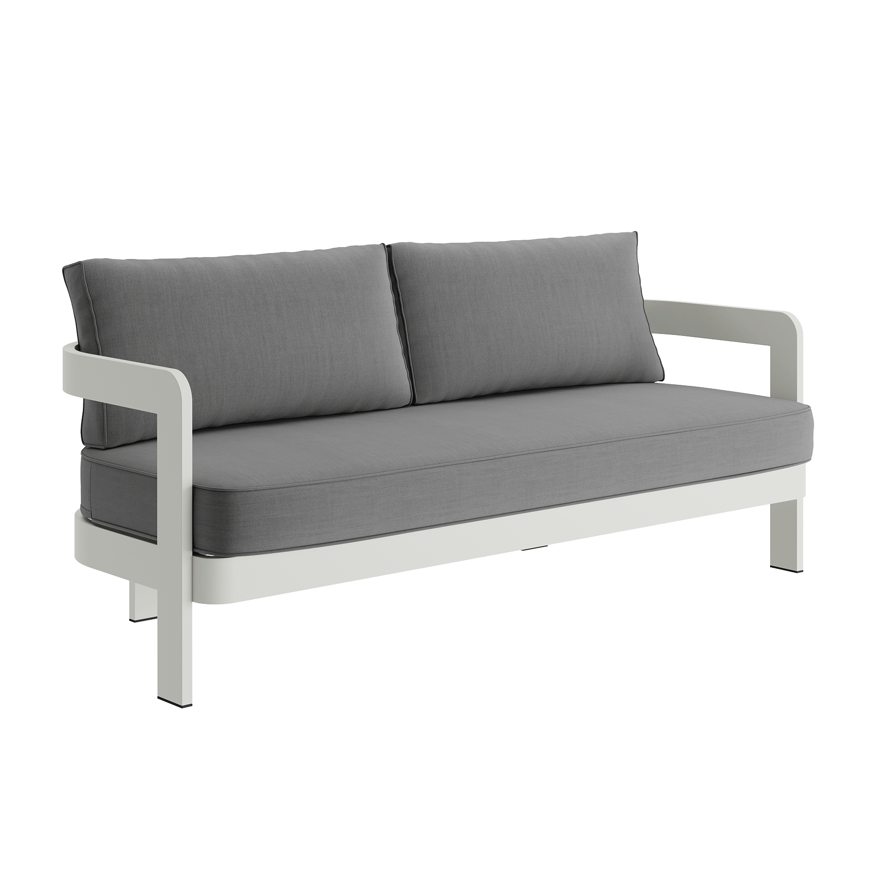 The N3 collection pays homage to the modern concept of proportion and architectural intricacy. The N3 Sofa is meticulously constructed from robust aluminium with a Stone powder coated finish. Its clean lines are juxtaposed with its gracefully curved backrest, accompanied by two supporting side legs and and two subtle legs at the rear.