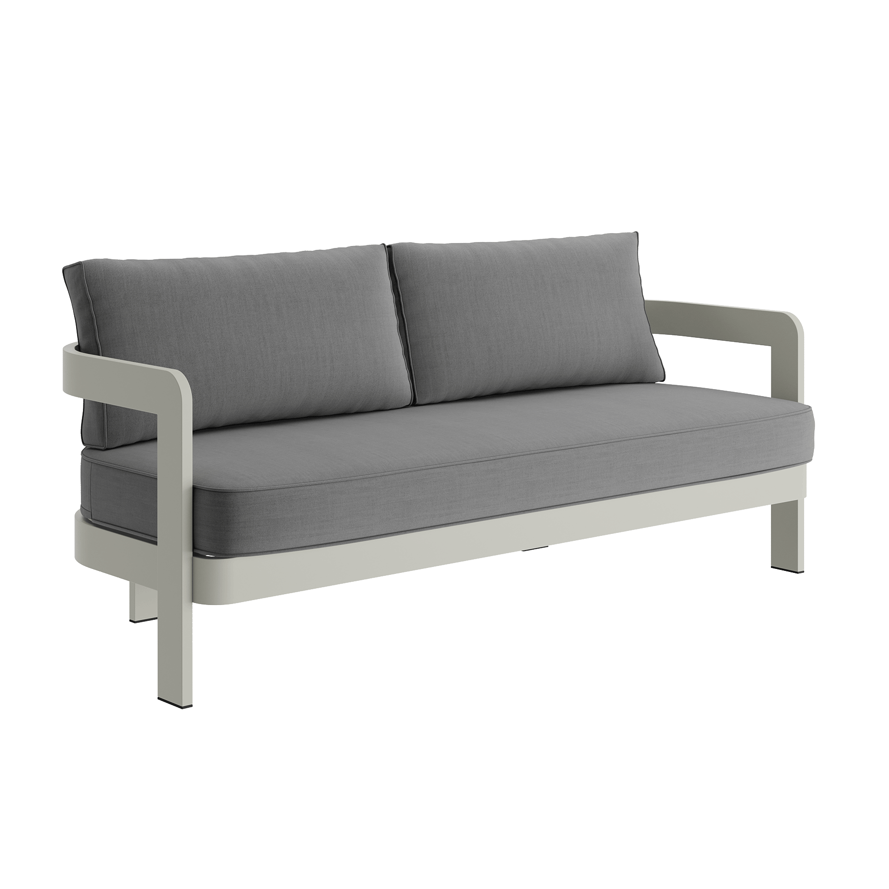 The N3 collection pays homage to the modern concept of proportion and architectural intricacy. The N3 Sofa is meticulously constructed from robust aluminium with a Taupe powder coated finish. Its clean lines are juxtaposed with its gracefully curved backrest, accompanied by two supporting side legs and and two subtle legs at the rear.