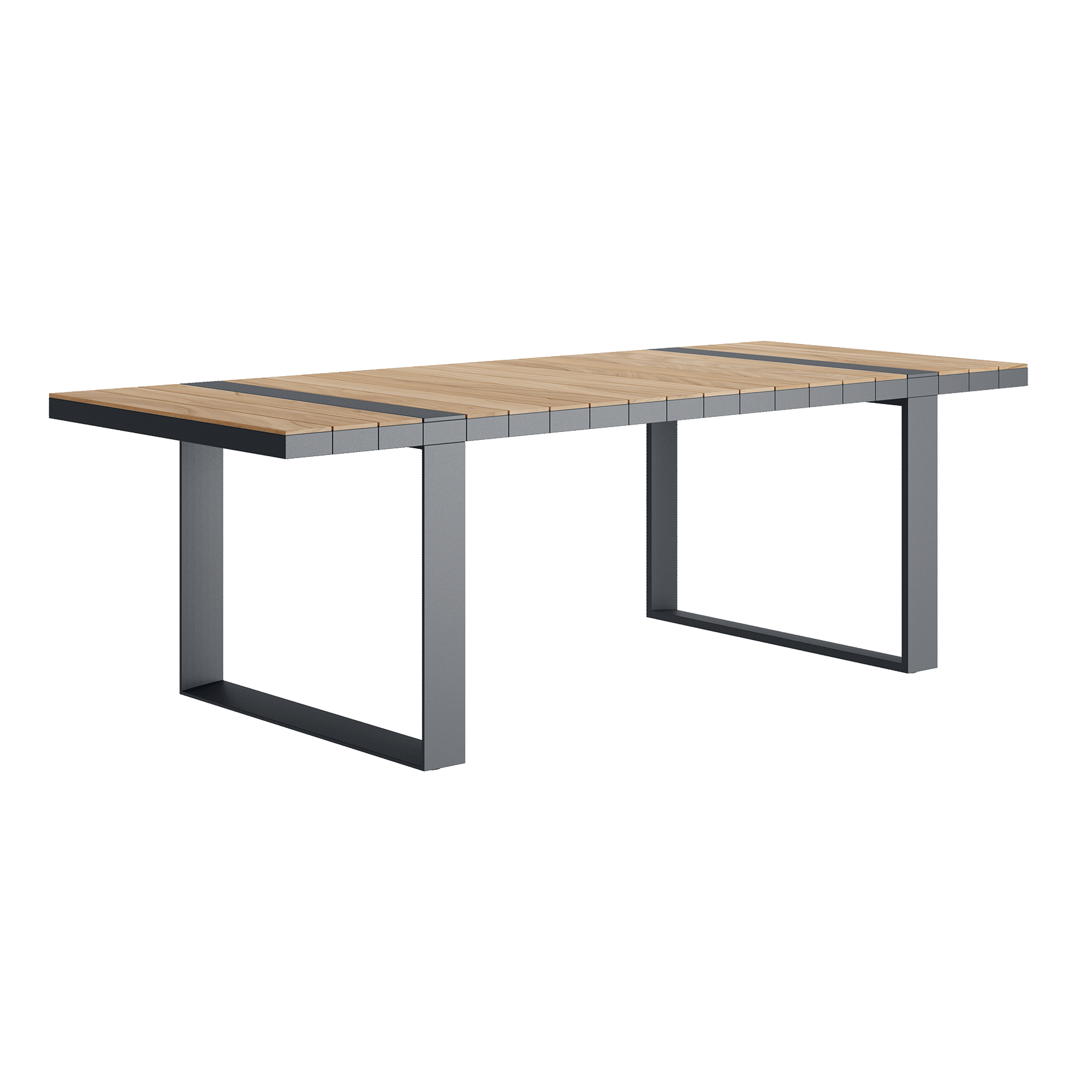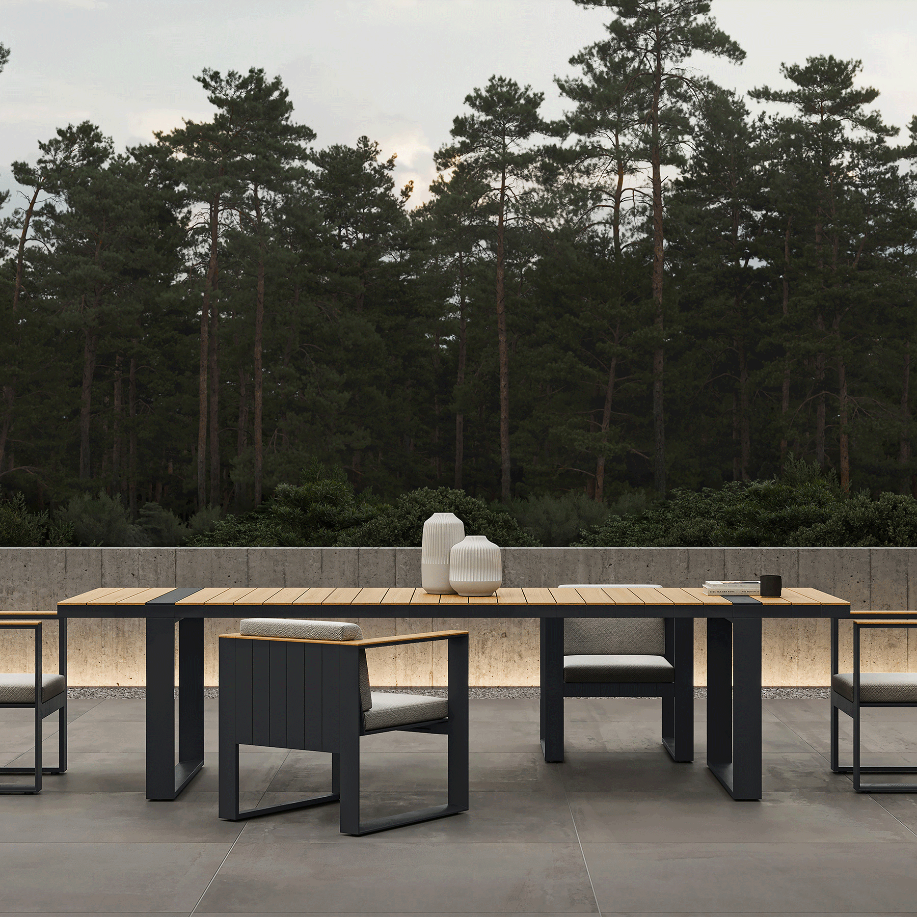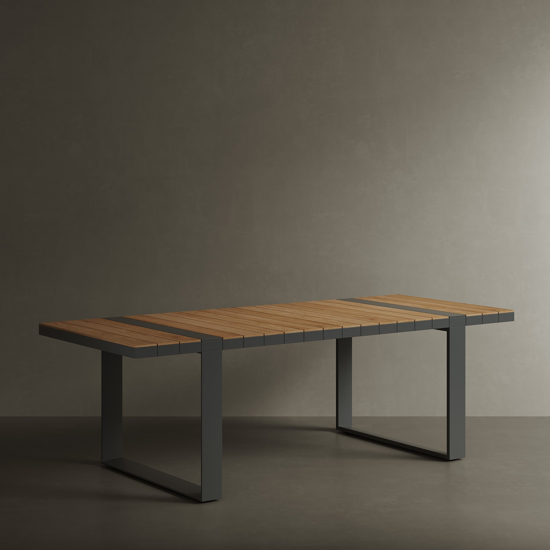 Designed with sociability and sophistication in mind, the N5 Dining Table caters to a range of gatherings, with family and friends. The thoughtful composition of materials ensures durability against the elements, with the teak providing a timeless appeal and the aluminium offering strength and ease of maintenance. This table is not just a piece of furniture but is statements of an elevated lifestyle, where every meal is an occasion, and every moment is cherished.