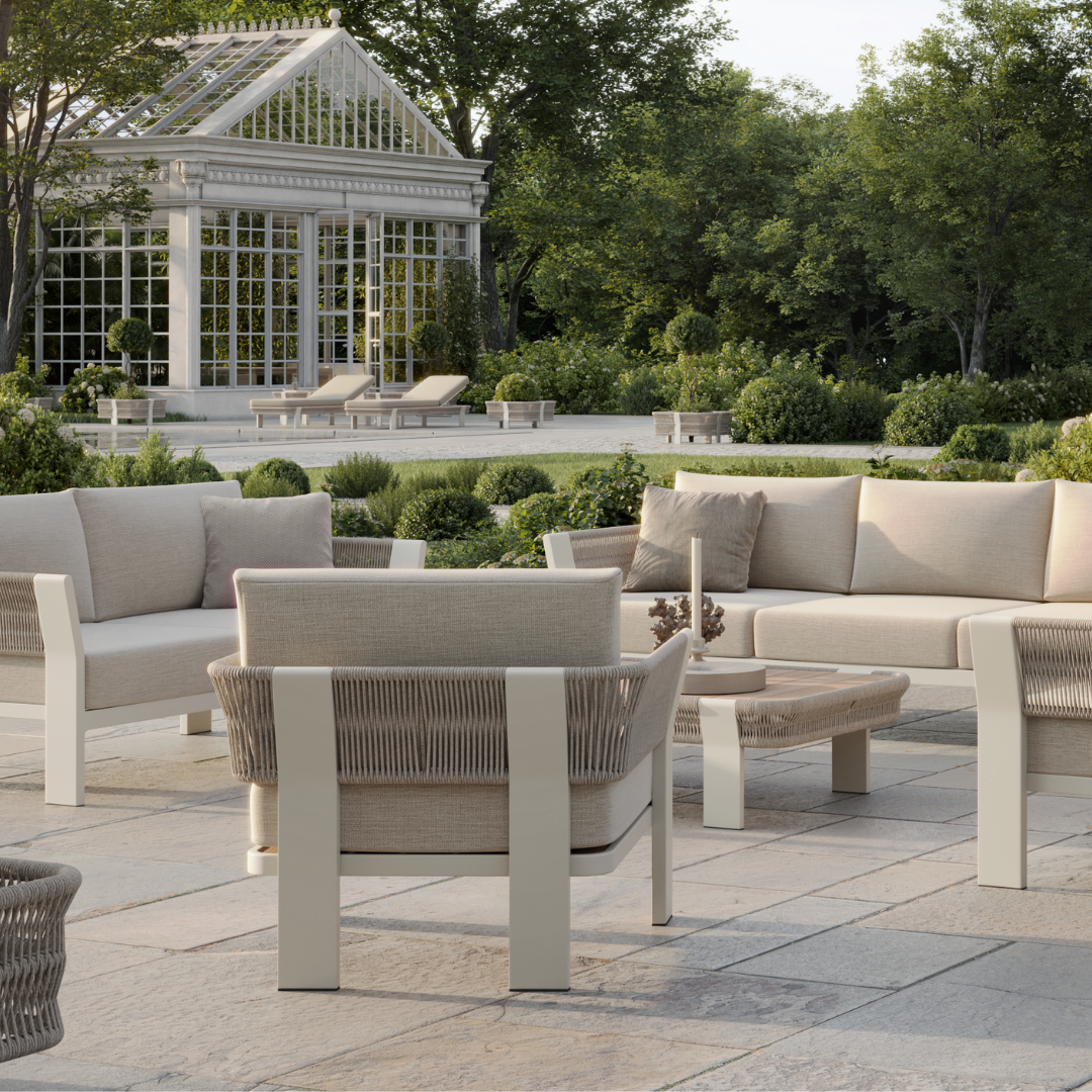 Crafted for both style and function, the N7 Lounge Chair is a testament to enduring quality and thoughtful design. The powder-coated aluminium frame is lightweight yet sturdy whilst being resistant to rust and corrosion, ensuring it retains its pristine appearance season after season. The rope is skilfully hand woven to withstand the rigours of outdoor use without fraying. The seat cushions are covered in Natural Weave fabric which promises resilience to soiling and mildew whilst also being water-repellent with a quick dry foam inner. This piece combines craftsmanship with enduring materials, promising years of enjoyment.