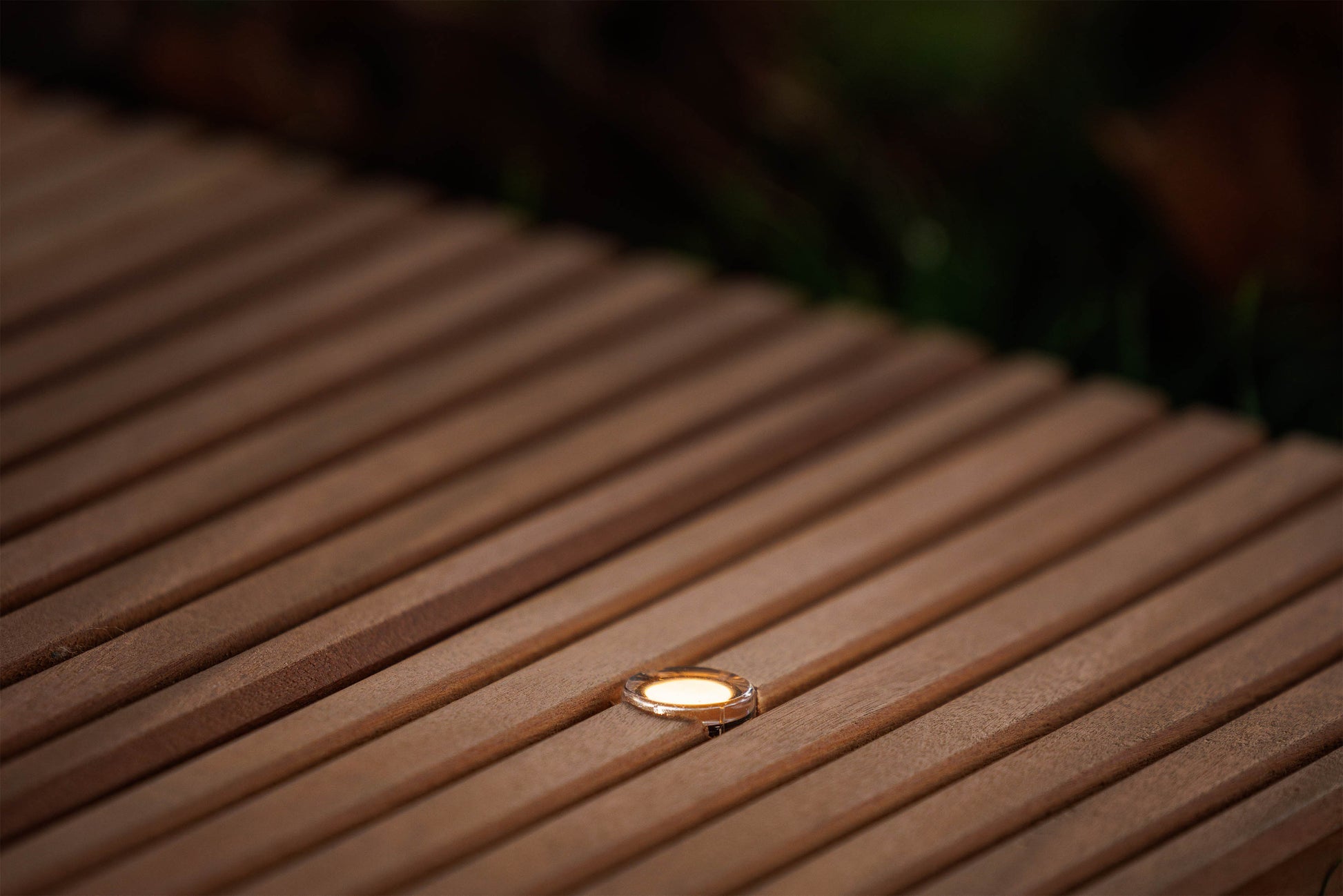 Onyx 20 is a subtle fixture that's barely visible during the day. With its warm white light, it provides very subtle orientation lighting in the evening. Onyx 20 is perfect for use along paths, stairs, and terraces.
