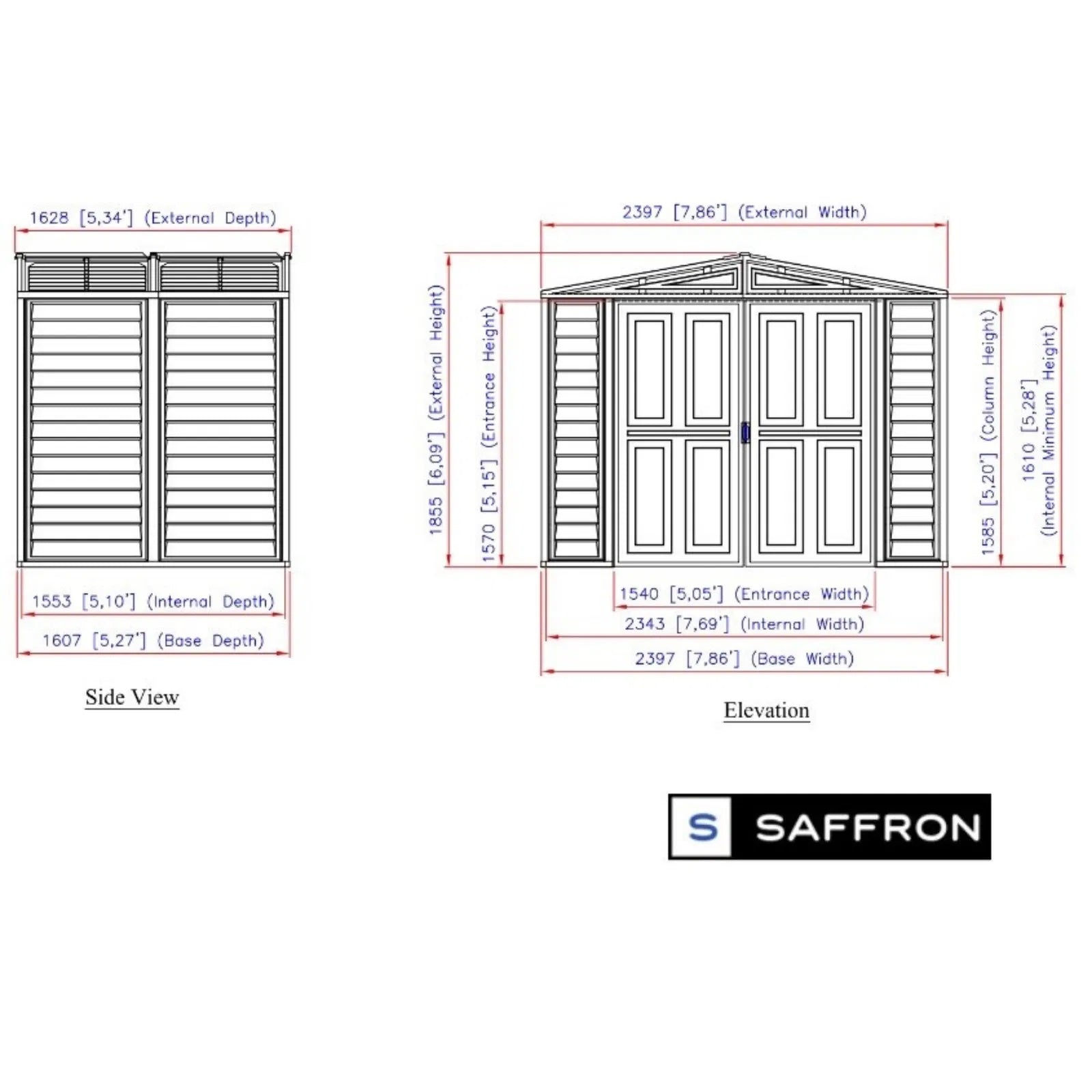 Saffron 8x5ft Vinyl Garden Shed with Foundation Kit